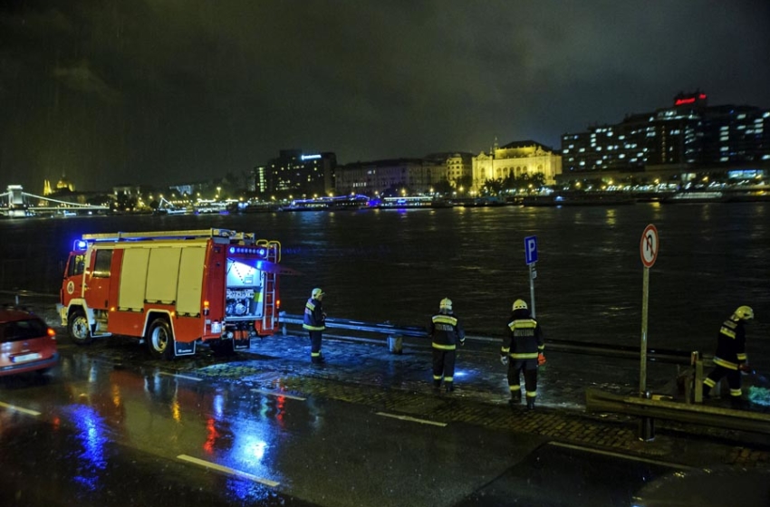A mentést nehezíti, hogy jelenleg is szakad az eső, a Duna árad, és folyónak gyors a sodrása.
